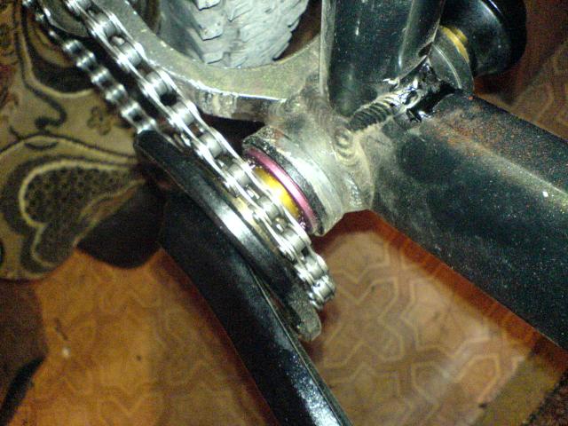 сзади обычная втулка, собачки фиксировал подшипниками, немного криво орех сел на втулке, из-за этого фикс. звезда ходит немного яйцом (вверх-вниз), но это не страшно..вроде)