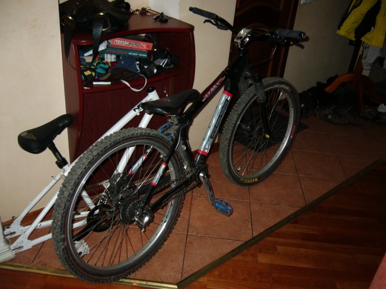 вот моя тележка!большая часть компонентов совсем скоро сменится,просто хотел по-быстрее собрать и учиться,например скоро сменю тормоза на вии ХТ,поставлю рок,поменяю вынос,грипс,поставлю нормальный натяжитель и т.д. в дальнейшем наверно сменю раму на эхо контрол или зу питбуль...ну а пока вот что я имею,и на чем пытаюсь триалить!