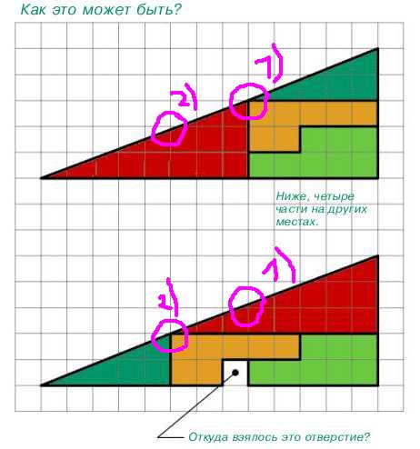 про треугольники вы чо все смеётесь чтоли?????????? вы их пробовали нарисовать в тетрадке в клеточку?? там ВСЁ РОВНО и ТОЧНО - все углы и все линии!!!!!!!!!!!!!!!!!!!!!! вообще картинка баян - ещё года два назад ломал над ней голову, а счас опять вспомнилось....хз в чём там дело...может вся математика, что нам рассказывают в школах/инстах это полная х*йня????