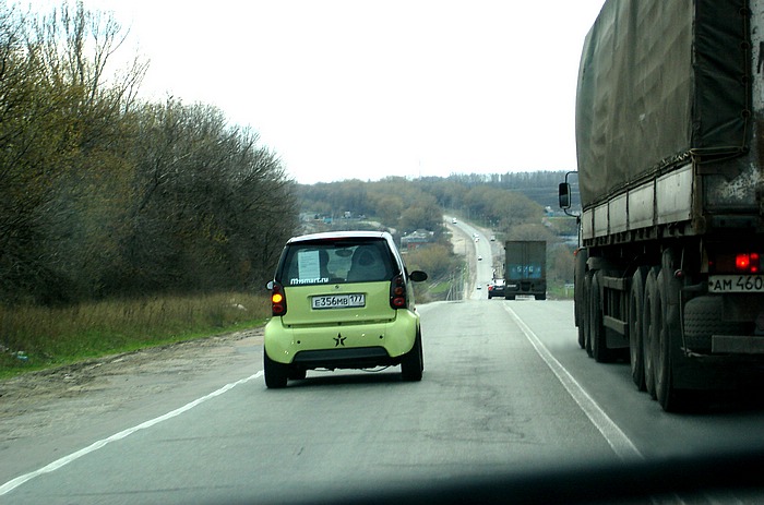 смарт как раз начинает обгон в самом начале спуска,