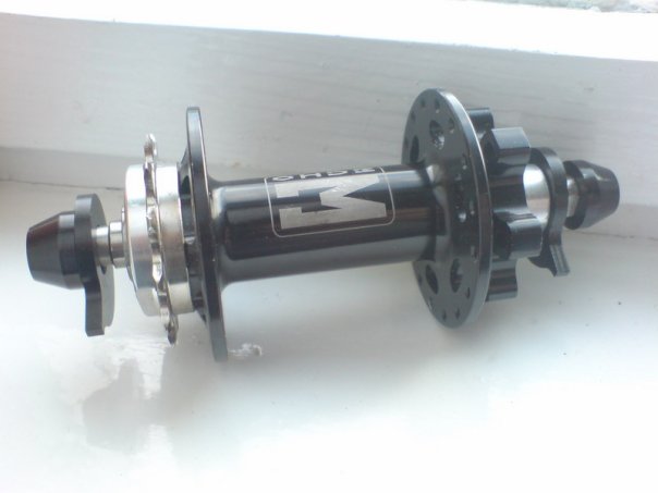 есть втулка onza,резьбовая со звездой ЭХО, ось выточенная и живет отлично,на гайках (предыдущие 2 визовские были сломаны практически сразу же),2 прома,работает без нареканий....