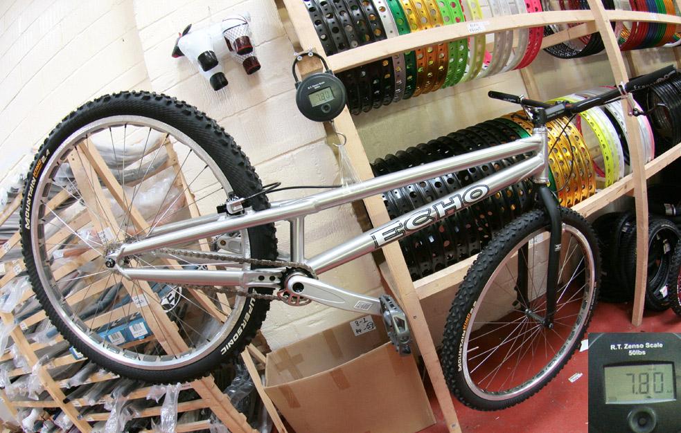 думаю мене 7.5 реально вот пример 7,8 меняем раму на доб, вилку на доб, задний обод на доб, педали на траел рамки ти ось,рокринг убираем , думаю 7.4 получится