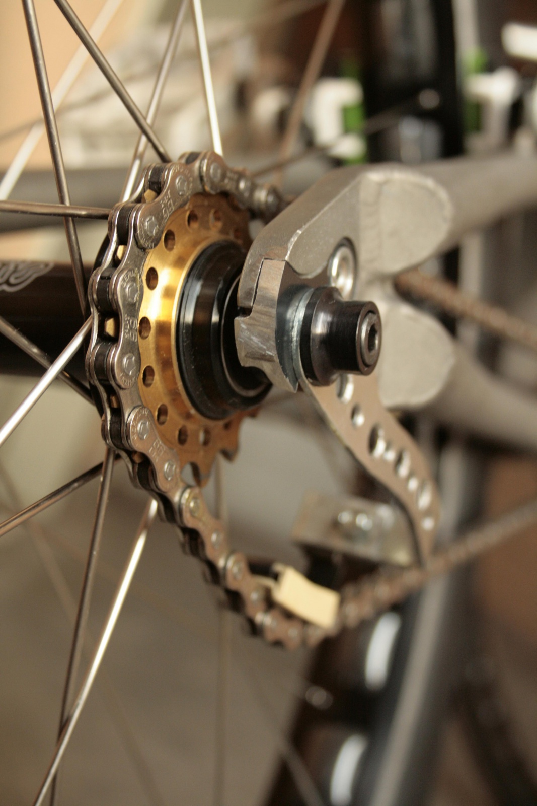 Проще уж аналог 74Kingz натяга сделать, что зажимаеца между втулкой и рамой, а сам нятяг - линейка - почти те же 20 рублей и выходит) и удары вытерпит!