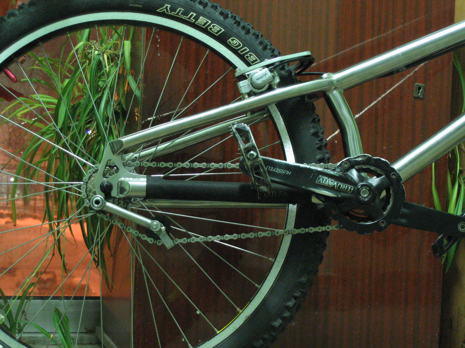 - двойной S-образный изгиб перьев - еще большая жесткость заднего треугольника, установка любого тормозного диска (хоть 160 мм хоть 205 мм), грамотная установка натяжителя - он уходит под перо.