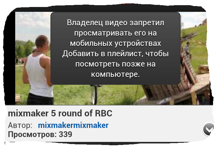 Я ничего не запрещал мобильным. Это ютюб тупой. Если там совпадение содержания со сторонним правообладателем, то на мобильных устройствах просмотр невозможен. Зачем так сделано, я не в курсе. Ничего с этим поделать не могу