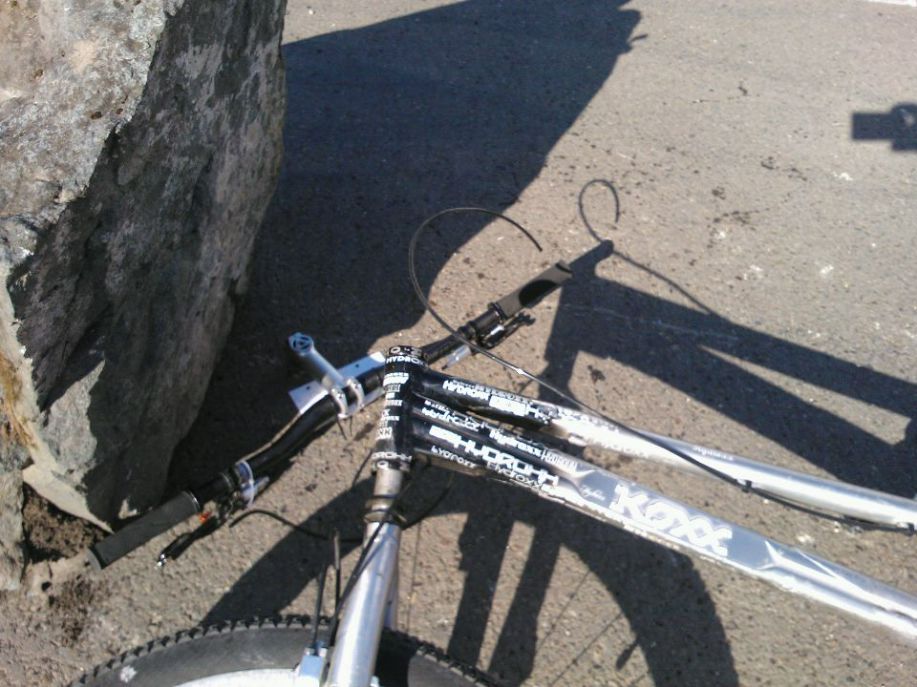 Только я не могу представить как можно ударить затылок, сломав вилку? Руль назад отдернуло что-ли, или колесо с препядствия вверх унесло?