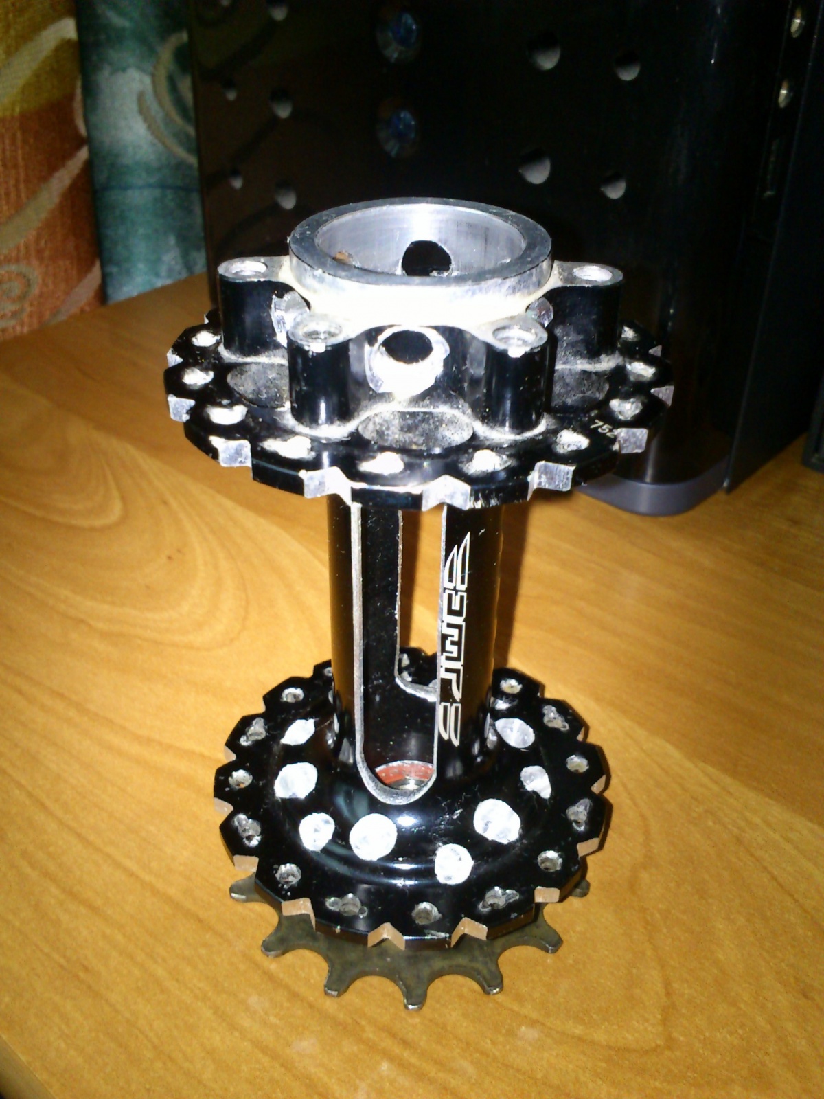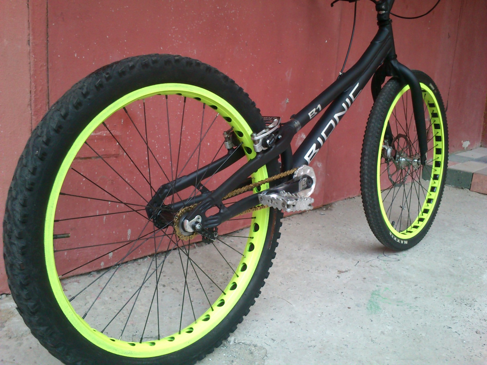 Что же еще было сделано?Итак: Запилены обода еще немножко,вилка обклеена винилом,т.к. нельзя её покрасить(Ti),подкрашены многие детали которые ну просто никак не вписывались в тему,болтики,направляющие,надпись МАКСИС,колодки и т.д. Некоторые детали обклеены,ну и просто запчасти в цвет.Если кто то знает как выглядит та или иная деталь в оригинале,поймет)
