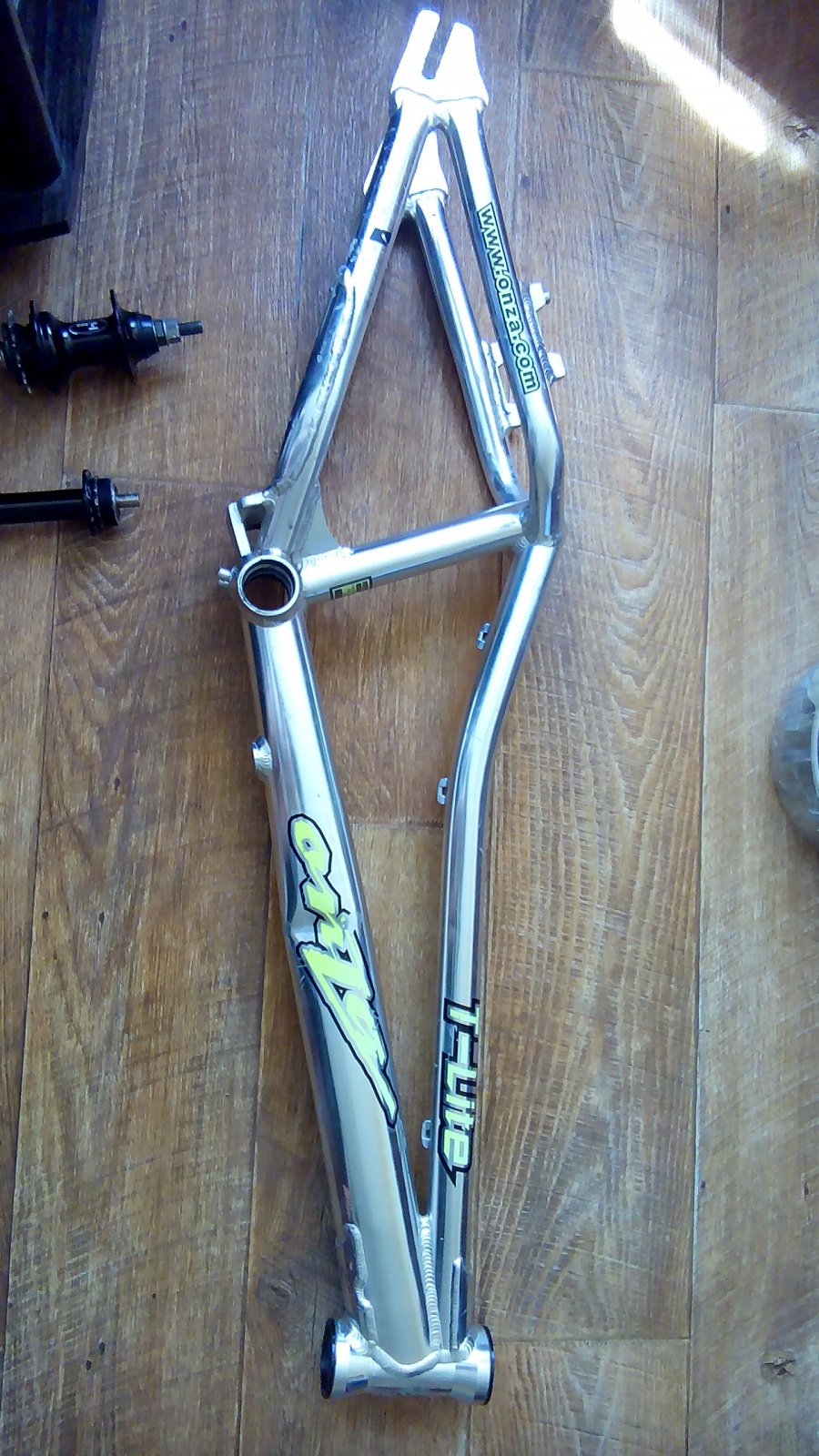 Лот № 6: Рама для модов , ONZA T-LITE cделана под олд скулл,трещин и заварок нет ,резьбы в норме все , но есть на нижней трубе вмятина на фото видно , я катал ещё 2 месяца трещина не появилась, рама голая но есть 2 раковины под рулевую без промов , по глупости отправил рулевую без раковин тк не имел с такими рулевыми ранее дел! .