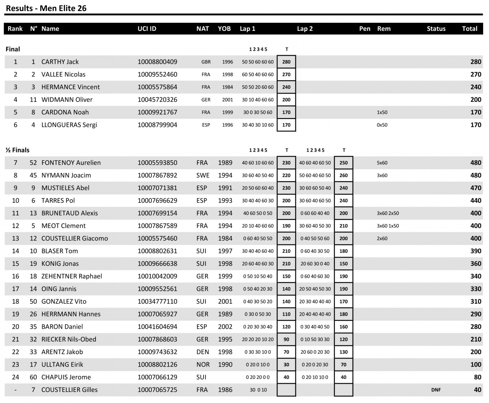 1. CARTHY Jack 280