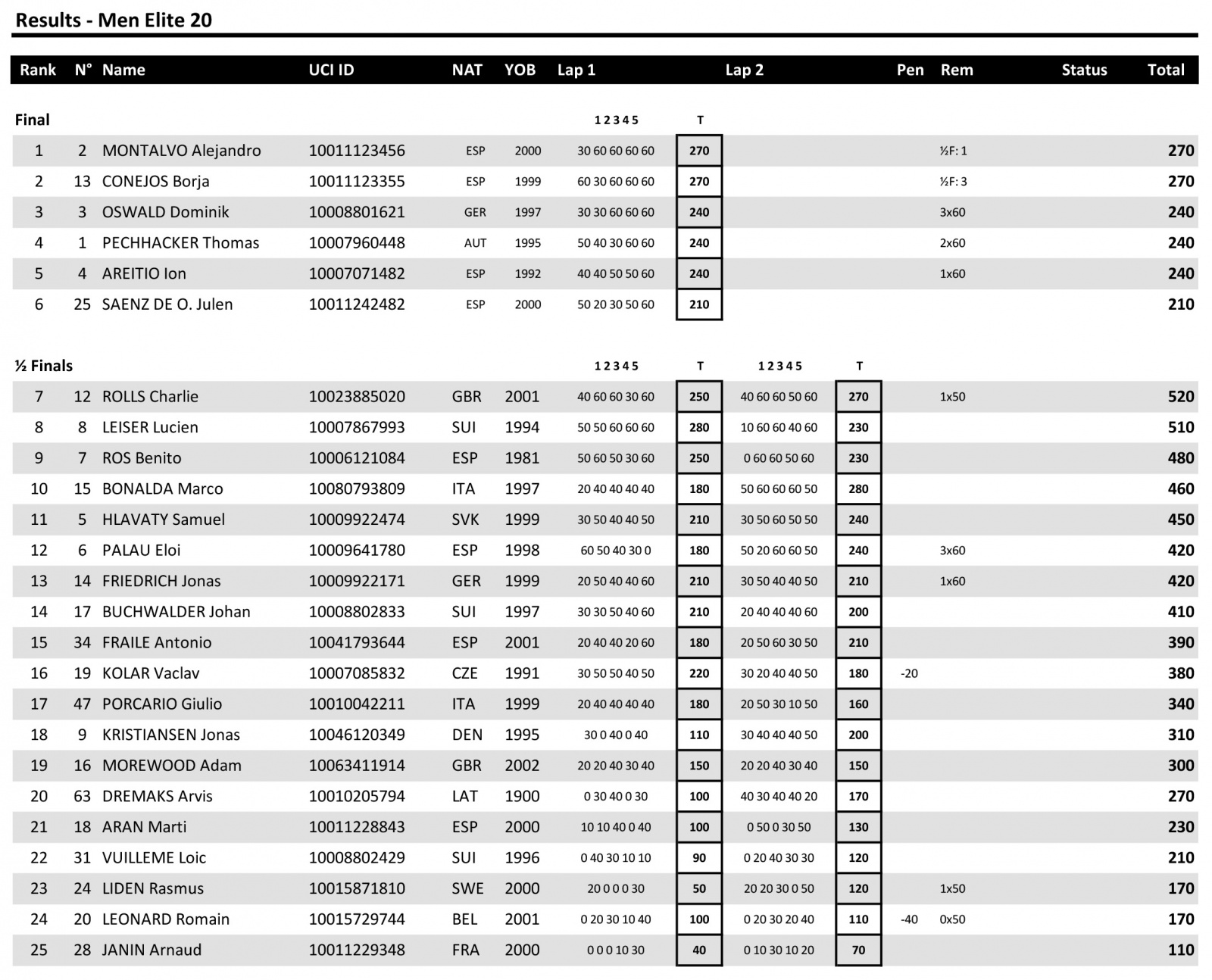 1. MONTALVO Alejandro 270 (1 место в полуфинале)