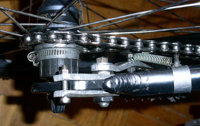 есть еще недостаток....мой друг так гонял и ета штука разболталась и попала в колесо и вырвала 3 спицы.И тогда ее поставили на уровне покрыхи все стало впорядке.Но вещь не очень удобная.К томуже цепь нодо сильно укорачивать