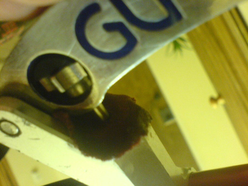Прокачана магуровским маслом, когда катаю каждые 1-2 часа на болте (за счет которого держится рычаг) обнаруживаю капельку масла снизу.