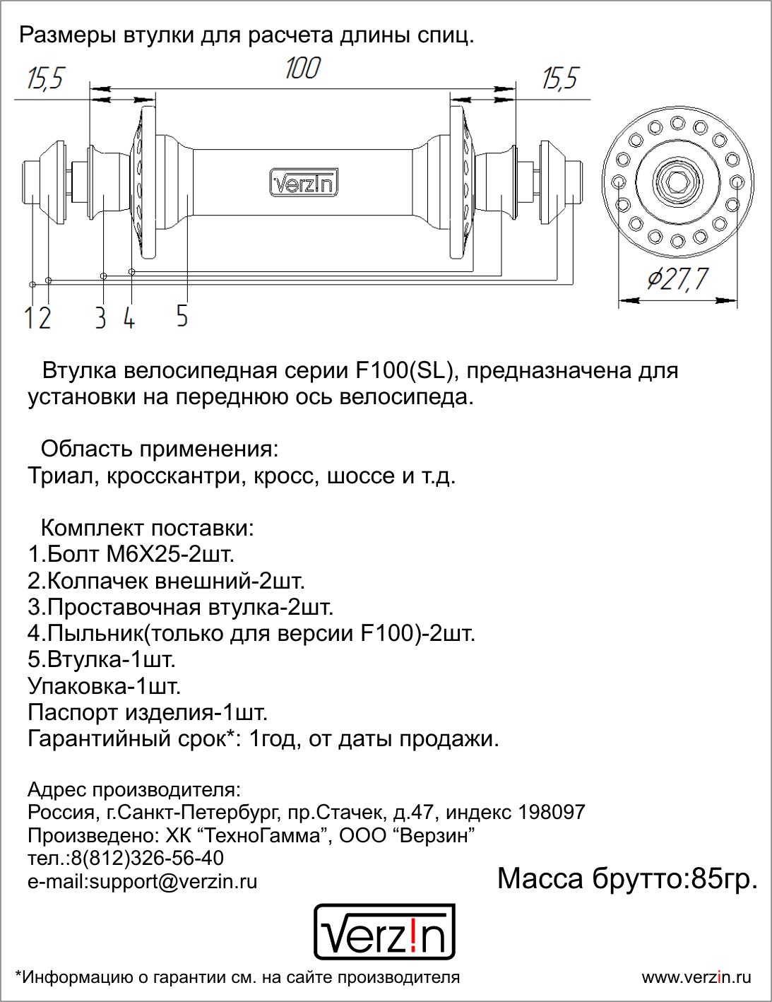 К продаже готовы передние втулки серии F100 и F100SL.