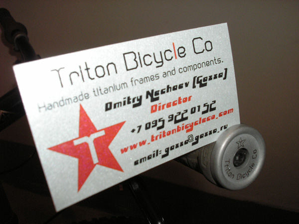 Я очень, очень очень очень, рад что получил спонсорскую поддержку от TritonBicycleCo! Спасибо Газзе! Человеку который очень ответственно относится к своему делу и к выбору командных райдеров))) Он находится в постоянном контакте, рама была сделана за очень короткий срок благодоря этому. Спасибо!