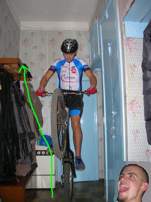 во как в подмосковье челы рубают, ноги с педалей соскочили после дропа с крыши, безбашенный начинающий райдер - Андрей, байк - херетик!