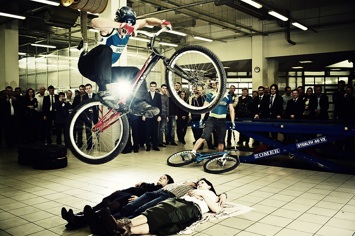 Выхожу из дома, думаю будет обычная съемка, у-сервис, презентация нового ниссана, беру стандартный набор, собираю рюкзак, еду... Опаздываю на час, но повода спешить не вижу на такие мероприятия, приезжаю, разворачиваюсь, достаю технику, вот в толпе и Александр Анатольевич, ведущий с мтв что-то глоголит в микрофон, приглашает в сервисную зону... Думаю пока народ топчется в сервисе, поснимаю машинку наедине, но что-то дернуло у меня в мозгу, решил пойти, посмотреть... Итог на фото