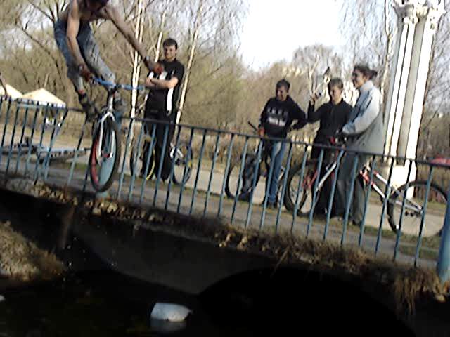 На фоте 3.джпг Лёха падает вроде как вниз. Так он свалился в воду или изловчился и на землю упал?