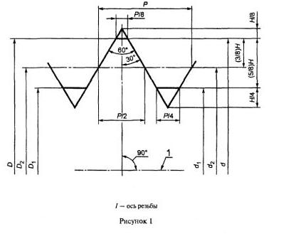 "Рисунок 1. Основной профиль метрической резьбы, общий для наружной и внутренней резьбы"