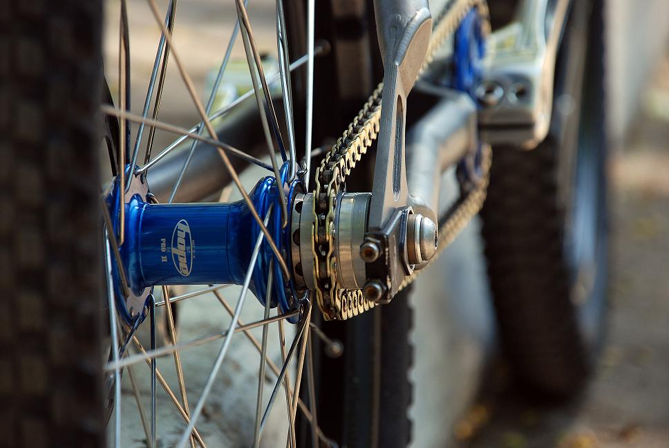 У меня просто с обычной цепью не получается колесо вплотную придвинуть, оно отодвинуто получается сантиметра на 2...