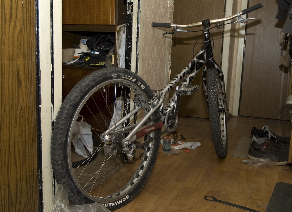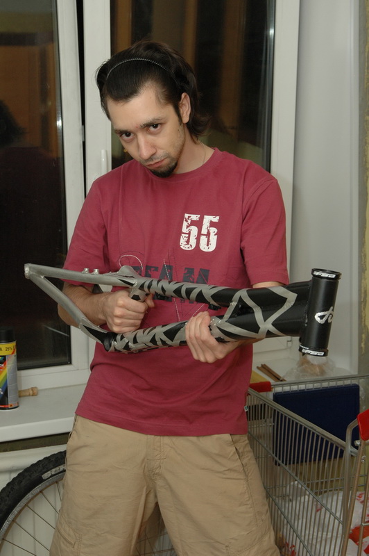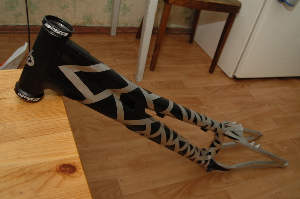 Менял очередную сломанную вилку и решил заодно покрасить байк. Захотелось что-то необычное креативное сотворить. Думал-думал как красить и придумал!