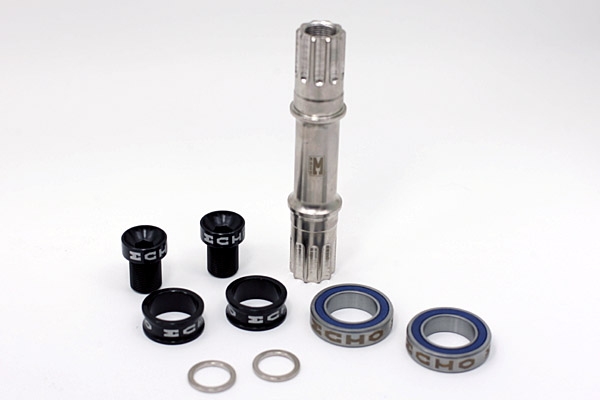 The upper one is our new echo urban bb, the bearing is close to the cranks, the axle is stronger too. It's little lighter than the middle one too.