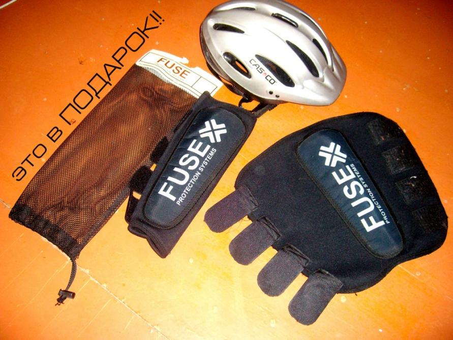 К байку в виде бонуса прилагается шлем "Casco" (бился им два раза, не сильно), и защита на голень "Fuse" (я ее постираю обязательно).