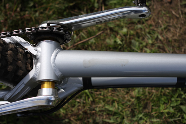 купил эту раму,не подошла,катал на ней раза 3-4 ,вроде даже царапины ни одной нет,байк не видел давно,посмотрю и точно скажу есть или нет!