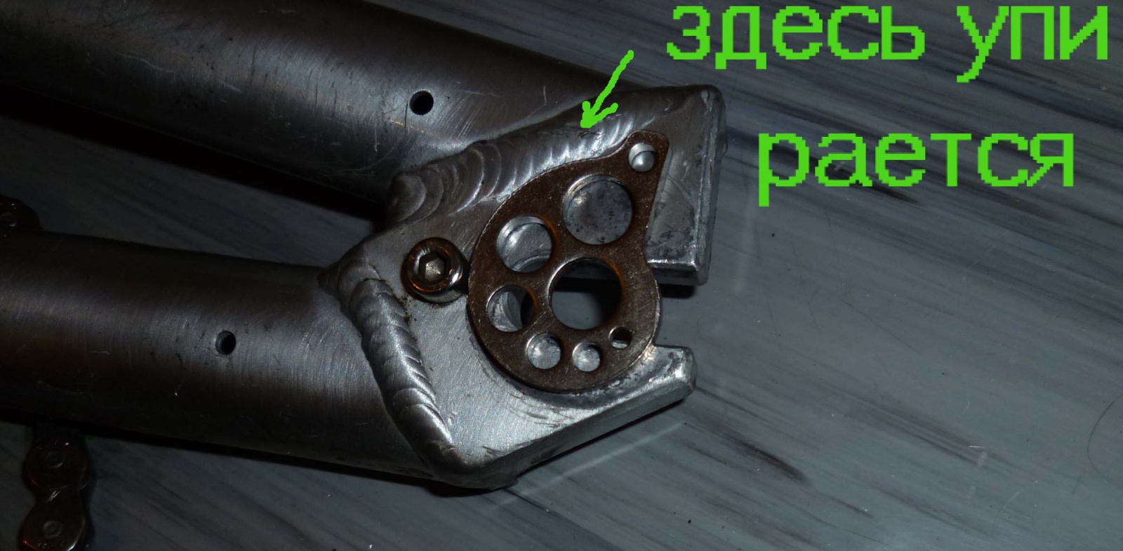 причем цепь?без цепи все тоже самое.на пути улитки к болту при вращении встречается сварочный шов(который между дропаутом и пером)