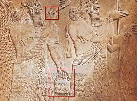 Это ассирийский барельеф. И память половины моих генов подсказывает, что это не браслеты для равновесия
