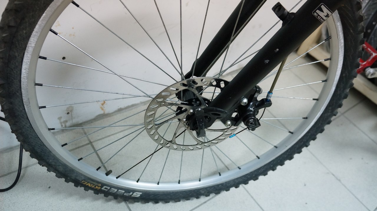 Тормоз передний: хаес мх-4, рубашка юнекс армированная, тросс - тефлон, ручка авид фр 5, ротор юнекс 180мм.
