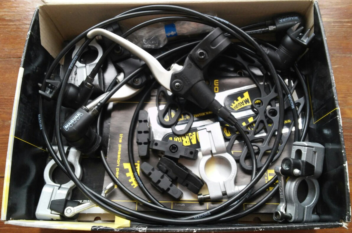 -Один комплект магура hs33 2003г, так всеми любимая) НО с бачками FIRM-TECH (под маговские вилки), ручка передняя + Магура hs11 с обычными бачками. Можно собрать обсалютно новую hs33, а необычные бачки повесить на стену) + останутся запчасти