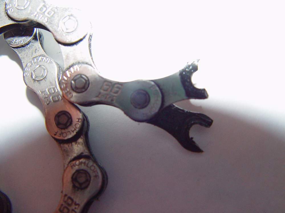 делал геп через молрду, на довольно неширокую тему, расстояние примерно 1.8 - 1.9м, до этого 2 раза все отлично получилось, прыгаю 3й раз, рвется цепь, лечу в этот бордюр, делаю что то типа кувырка через голову, слава богу сам отделался только небольшим растяжением руки, цепь порвалась, но гарантия на нее не распрастраняется...=( очень обидно, причем порвалась в том месте где я её не расклепывал 100%, прослужила около 3 месяцев.